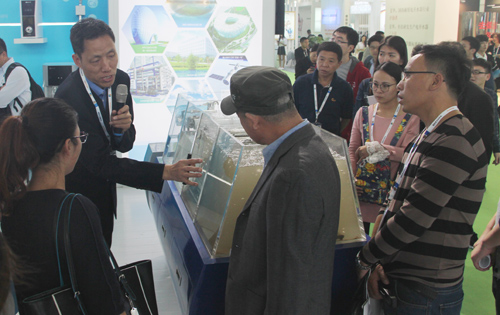 碧水源研發(fā)中心首席科學(xué)家、教授級(jí)高工李鎖定仔細(xì)的為現(xiàn)場的媒體記者和參觀者們講解