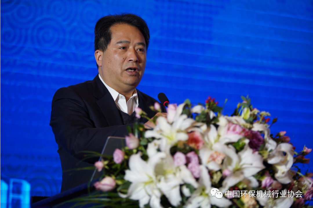 中國環(huán)保機械行業(yè)協(xié)會當(dāng)值會長文劍平主持大會